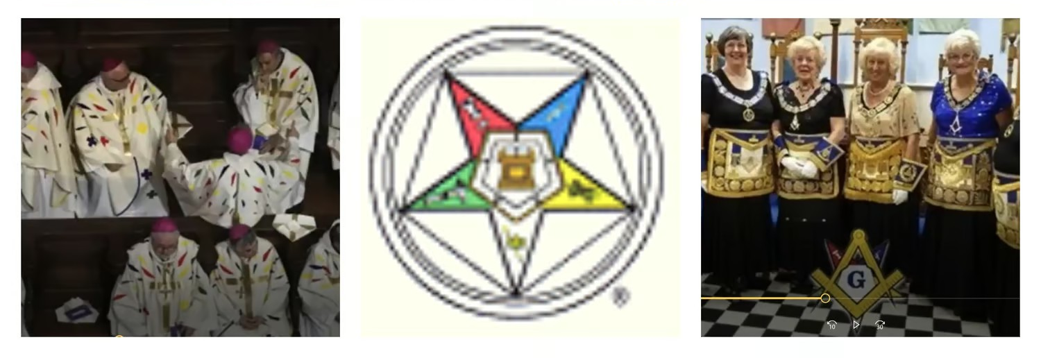 The Order of the Eastern Star (OES) is a Masonic body that is open to both men and women. Established in 1850 by Rob Morris, a prominent Freemason, the organization was designed as a way to welcome women into their fraternity. Could this be a coincidence that catholic clergy decided to wear Eastern Star’s colors?
